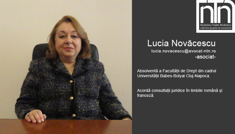 Cabinetele grupate de avocat Novăcescu-Toader-Novăcescu reprezintă o structură profesională rezultată din asocierea avocaţilor Lucia Novăcescu, Acidalia Toader şi Lucian Novăcescu, formând o echipă în care experienţa şi profesionalismul se îmbină cu dinamismul şi permanenta preocupare pentru protejarea intereselor clienţilor.